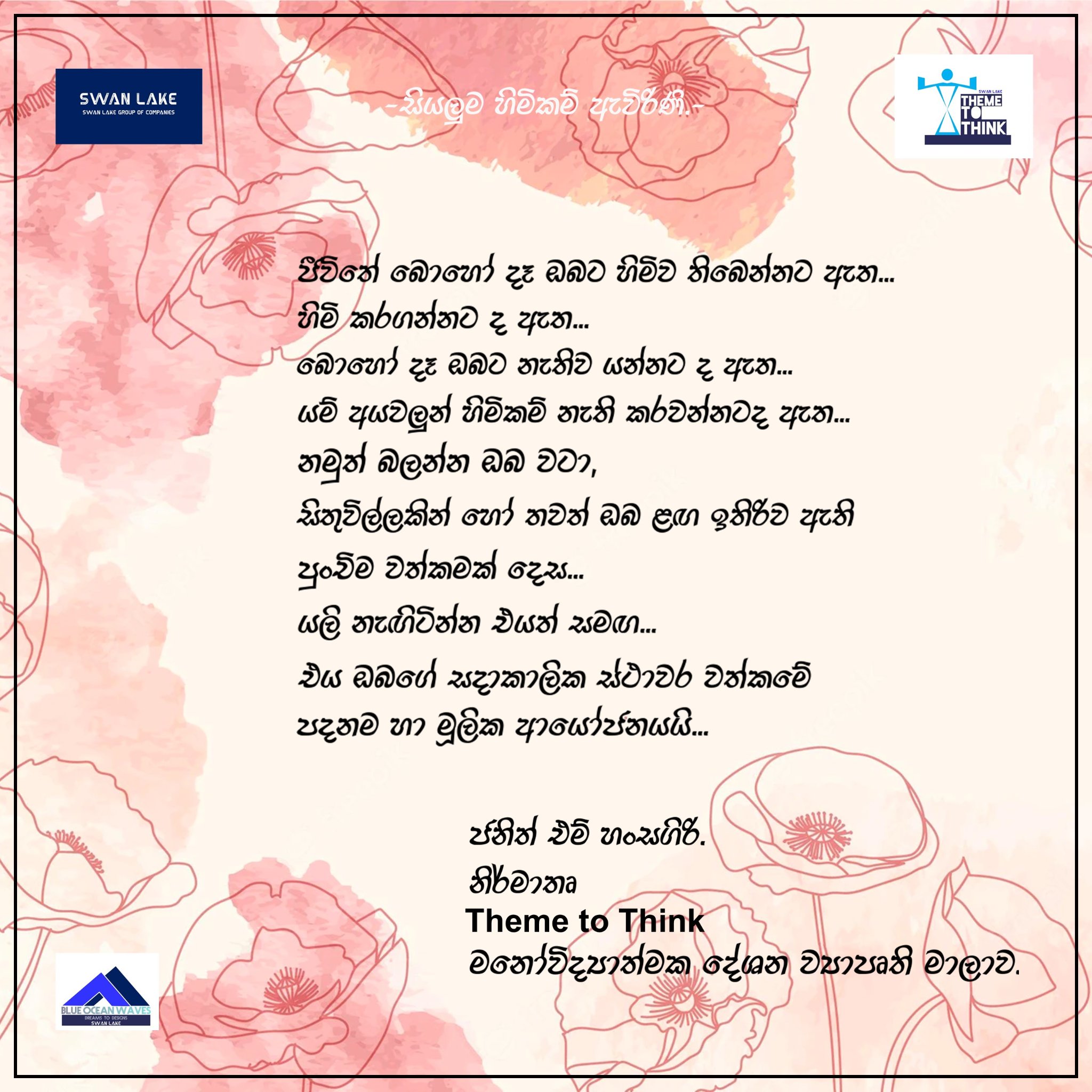 Conducting positive thinking lectures and psychological counseling services throughout the island. We will help you achieve success in your life through healthy mental exercises, successful money making and happy life